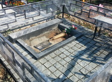 Перед нами стандартная могила, где уже захоронено два человека. Мы оставляем без изменения только ограду, ее мы только надежно зацементируем и покрасим. Все остальное мы изготовим и установим.
