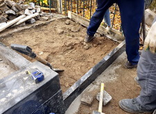 В первую очередь мы начали с подготовки надёжного основания для будущего памятника. Для этого мы раскопали необходимую часть места захоронения.
