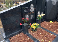 Последним штрихом стало нанесение надписи на надгробье, а также влажная уборка брусчатки перед местом захоронения. Дополнительно к приезду клиента мы разместили в каждой траурной урне цветы, преображающие до неузнаваемости строгий мемориальный комплекс.